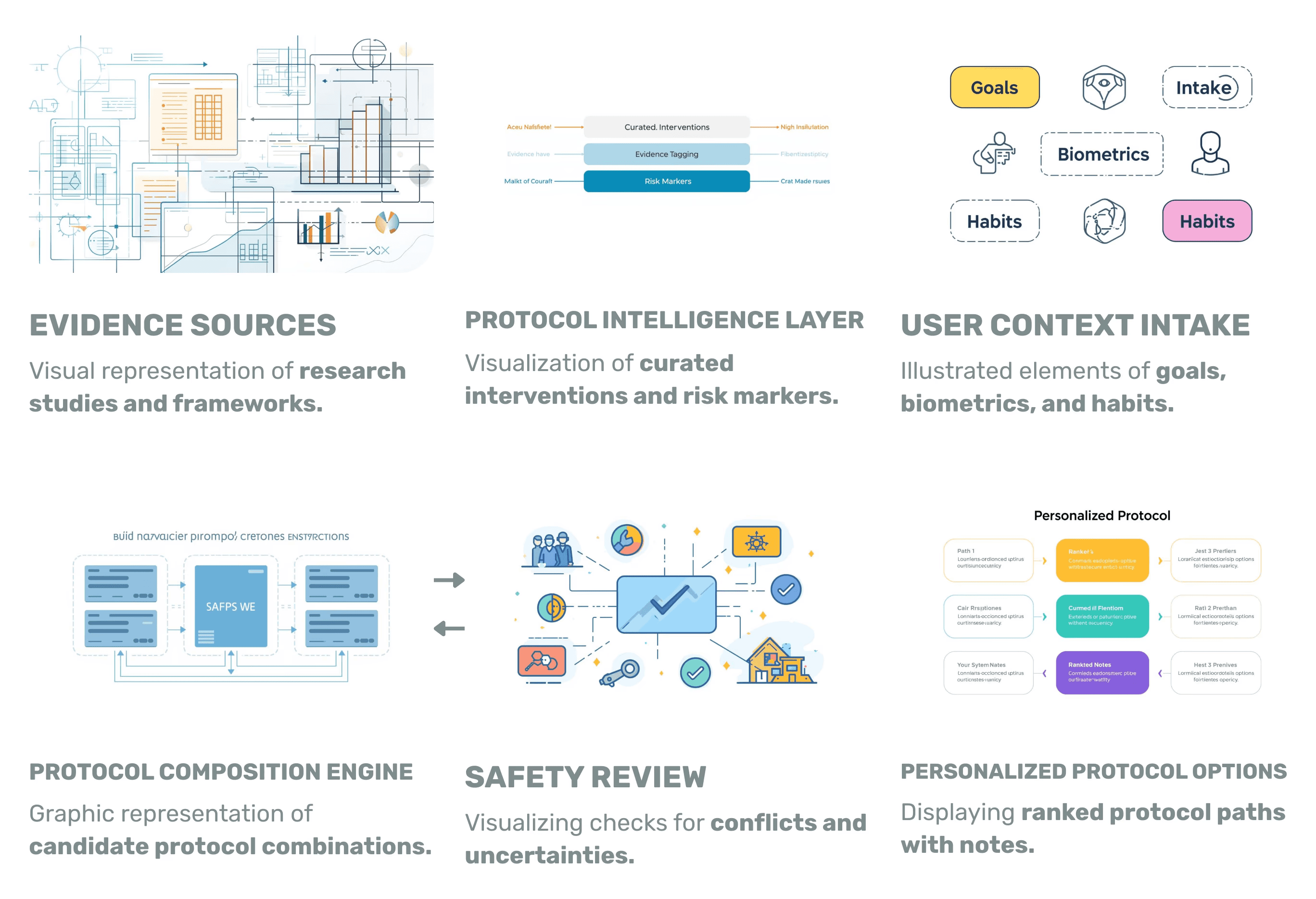 A retrieval-augmented system that synthesizes research-grounded health protocols and generates personalized protocol options.